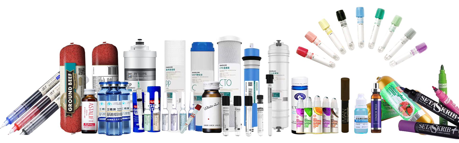 全自动卧式小圆瓶不干胶贴标机可以满足制药行业中的安瓿瓶、口服液、采血管等产品;文具用品行业中的笔杆、固体胶、浆糊笔等产品;化妆品行业中的口红、眉笔等产品;肉制品行业中的火腿肠等不能站立的圆形产品的全周或者半周的自动化贴标,。